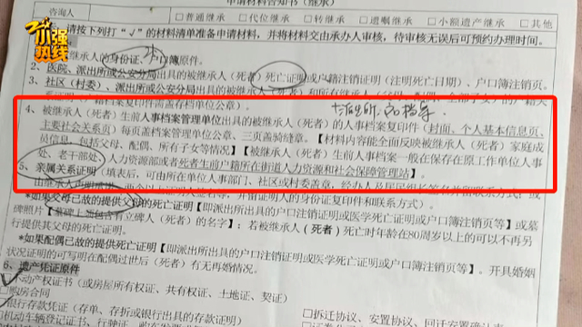 于是,蒋先生来到了公证处,可没想到,第一步就遇到了麻烦,他提供不了办理公证的材料:“除了我的身份证和死者身份证、死亡证明,其他我都办不出来。”