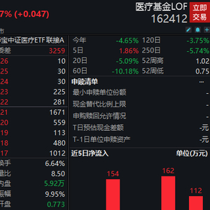 5月10日,场内基金出现一只异动品种,医疗基金LOF(162412.SZ)午后被拉涨至9.69%附近,与当日市场主流趋势大相径庭;1.8亿的流通盘被如此拉升,在LOF基金场内交易中也不常出现。
