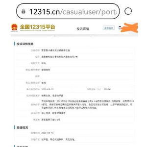 3月16日,12315网络平台显示:经审查,符合受理条件,决定受理。