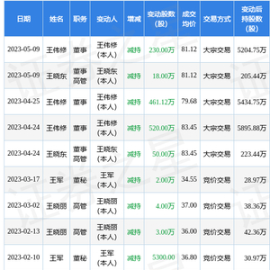 证券之星讯,根据5月10日市场公开信息、上市公司公告及交易所披露数据整理,中际旭创(300308)最新董监高及相关人员股份变动情况:2023年5月9日公司董事王伟修、董事,高管王晓东共减持公司股份248.0万股,占公司总股本为0.3097%。变动期间公司股价上涨5.81%,5月9日当日收盘报81.94元。