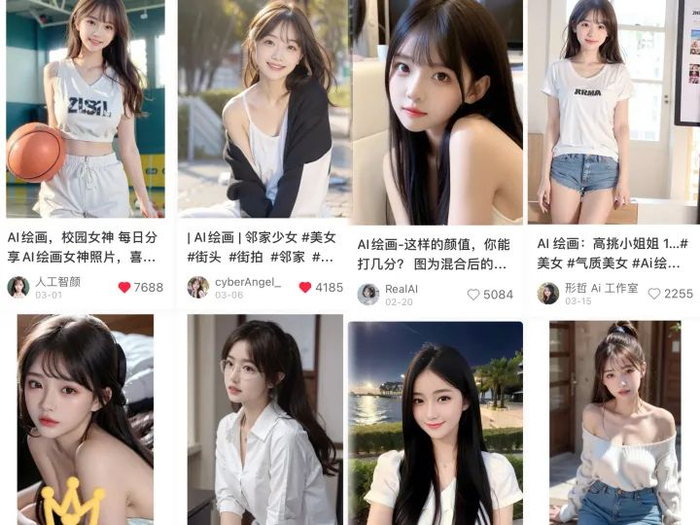 批量生产的“颜值博主”AI美女占领社交平台“AI越来越像真人,网红越来越像AI。”随着算法升级,虚拟与现实世界越发模糊,我们很难分清网上的人到底是真是假。校园女神、邻家少女、气质女生……最近,社交平台上涌现出大量颜值博主,清一色是AI画图程序生成,业内称之为AI颜值博主。AI颜值博主“cyberAngel”告诉记者,她已经拥有2.1万的粉丝,简介是“我只是一个没有感情的机器人”。她分享的女神照,骗倒了不少人,有网友评论:“可以认识么?”“能加微信么?”结果被博主一句“AI画的”浇了冷水。