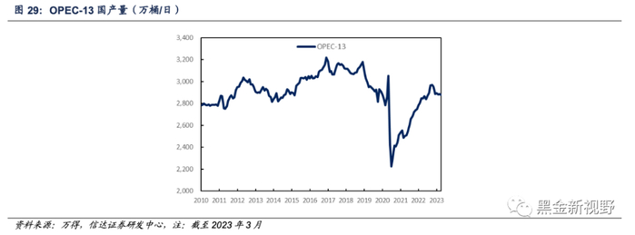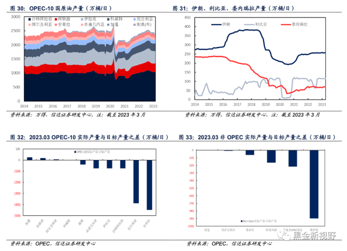 对于未参与减产的伊朗、利比亚和委内瑞拉,三个国家在2023年3月的原油产量分别为256.70、116.10、69.50万桶/日,环比-0.7、-0.2、+0.3万桶/日。