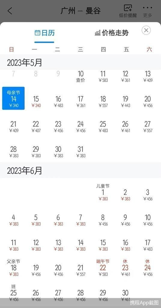 在东南亚航线方面,携程App显示,5月泰国狮航广州直飞曼谷机票含税价低至299元,与九元航空的“10元票”含税后价格相差不大,5月12日-6月30日机票最低含税价区间为299-583元。5月11日-18日,南方航空广州直飞新加坡机票最低含税价从2298元降低至1078元。