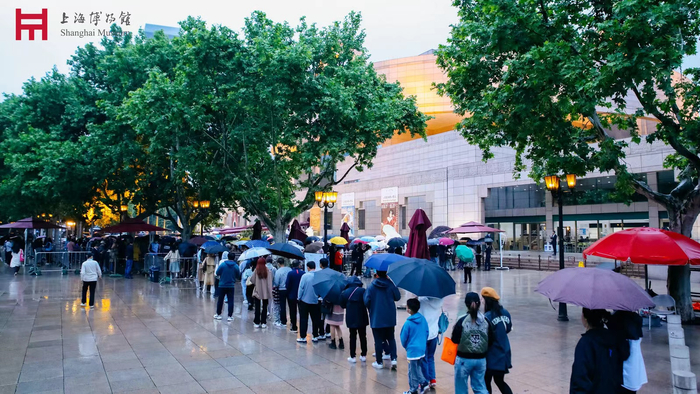 “英国国家美术馆珍藏展”最后一日,上博南广场等待入场的观众。