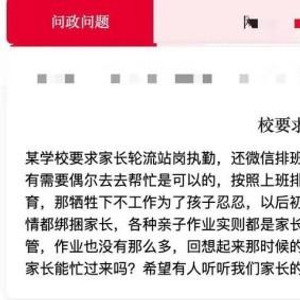 “现在呢?各种家长会这事那事,家长能忙过来吗?希望有人听听我们家长的心声,谢谢了!”