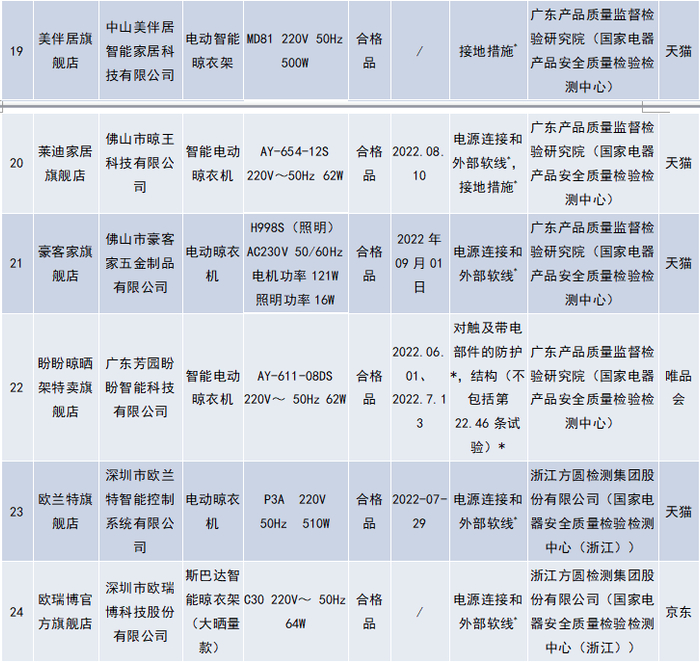 “顾家家居”“欧瑞博”等24批次电动晾衣架不合格!
