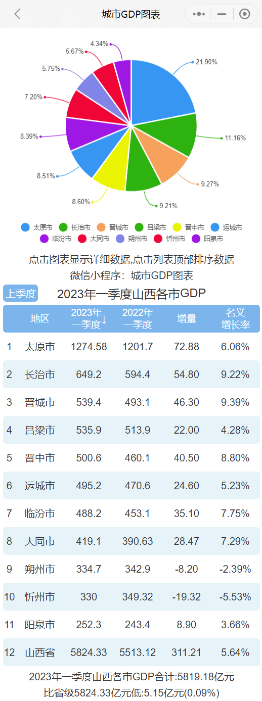 原标题:2023年一季度山西各市GDP排行榜 太原排名第一 长治排名第二