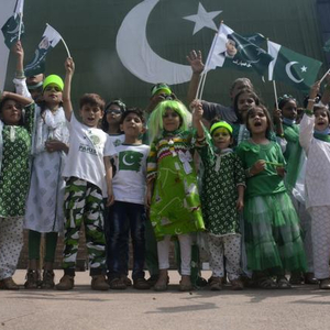 ▲巴基斯坦儿童在第二大城市拉合尔参加独立日庆祝活动。图/新华社