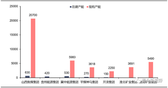 资料来源:各煤炭集团债券募集说明书,信达证券研发中心 注:统计不完全。仅考虑炼焦煤在建矿井。部分集团现有产能包含动力煤矿井。贵州能源集团现有产能数据缺失。