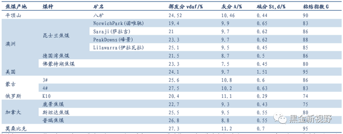 表9:世界主要焦煤产区煤质特征