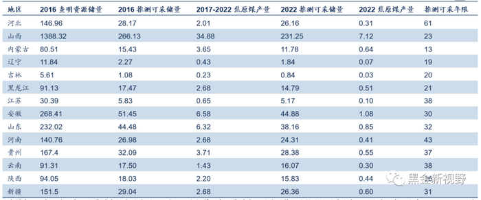 表2:我国部分省份炼焦煤资源推测可采年限(亿吨,年)