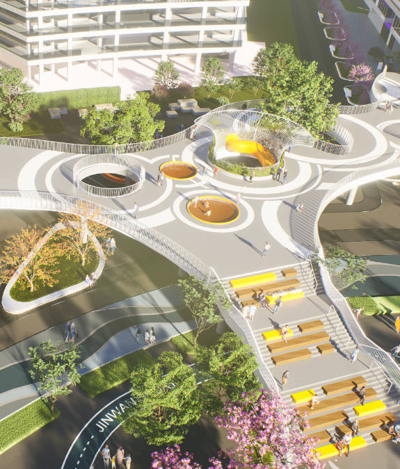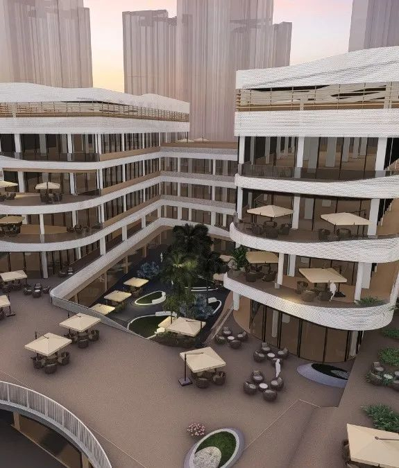 - “壹栋”临街商铺设置银行网点,内街规划零售、茶饮商铺,2-8楼为政企办公场地;