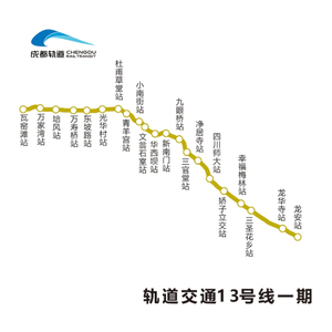 据了解,成都地铁13号线一期起于瓦窑滩站,途经万家湾站、光华村站、青羊宫站、新南门站、九眼桥站等止于龙安站。成都轨道集团表示,根据通车实际条件和线路实际建设情况,13号线一期工程需全线土建、轨道、机电等全部专业完工后才能开通运营,故无法提前开通局部站点。