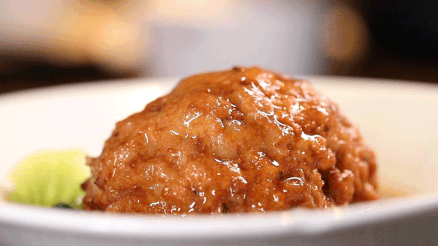 不要小看这几个简单动作,其实极需体力和耐心,所以真正手工剁肉的狮子头越来越少。