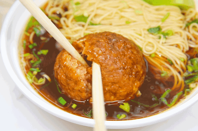 煮上几根面条,放上两个狮子头,再烫几片菜叶