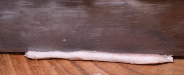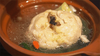 狮子头全部是由师傅纯手工制作而成,反复历经约2400次细切粗斩。