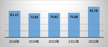 2018年至2022年洋河股份营业总收入(亿元)