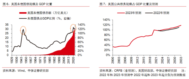 1968年至今,美国财政赤字占GDP比重与黄金价格的相关系数为0.66。根据美国尽责联邦预算委员会(CRFB)2023年2月发布的报告,受过去一年美国立法及行政措施影响,其财政赤字情况预计有所恶化。