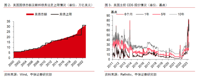 根据中信证券研报,美国债务上限问题担忧情绪在美国主权信用违约互换(CDS)市场中表现明显。从流动性较好的五年期CDS报价来看,市场当前对于美债违约的风险定价与2011年时接近,反映市场对于债务上限问题和美债违约可能性的担忧。