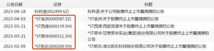 值得注意的是,除了触及交易类退市外,*ST西源、*ST荣华等还触发了营业收入低于1亿元+扣非净利润为负”“净资产为负”等多重财务类退市指标。