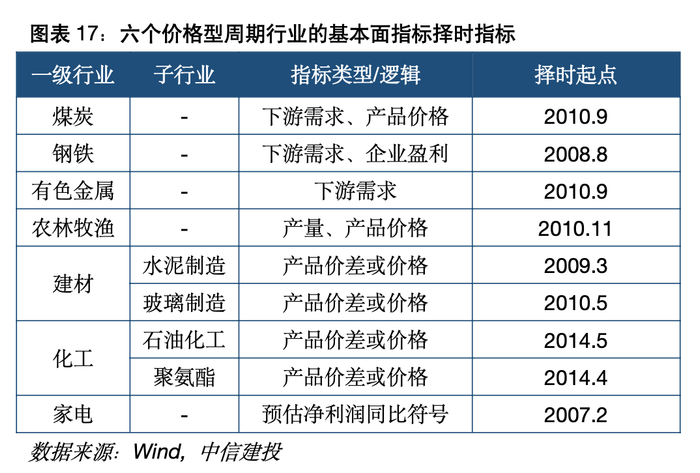行业基本面方面,通过梳理行业逻辑,筛选重要指标,选择其中和行业ROE、超额收益都具有高相关的指标构造单行业量化基本面择时策略,各行业的多空年化收益率均高于12%。