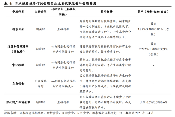 4.1. 日本证券投资信托管理行业主要收取运营和管理费用