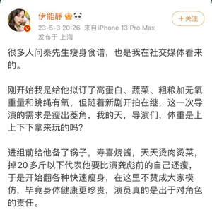 真是令人不禁感慨:明星是真“彪”啊,瘦起来就跟玩儿似的。在网友们热切的“求同款”呼声下,伊能静公布了为秦昊打造的瘦身食谱。