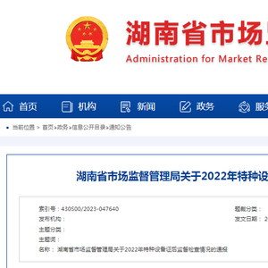 湖南省市场监督管理局关于2022年特种设备证后监督检查情况的通报