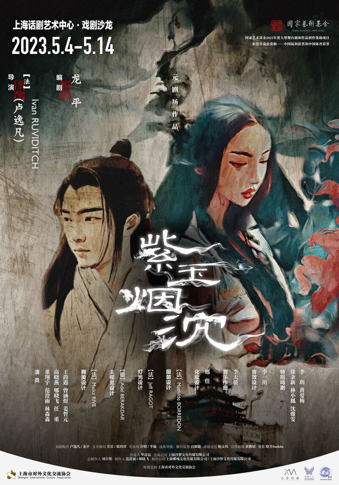 话剧《紫玉烟沉》取材自《搜神记》中的同名故事,将原故事扩充和改编为五幕悲剧,在时代大背景之下发掘其中的现代性——春秋末年,吴国由盛转衰前夕,两位主人公被阴谋诡计包围,被宿命裹挟,一步步走向分离,个体悲剧与国家命运彼此交织。