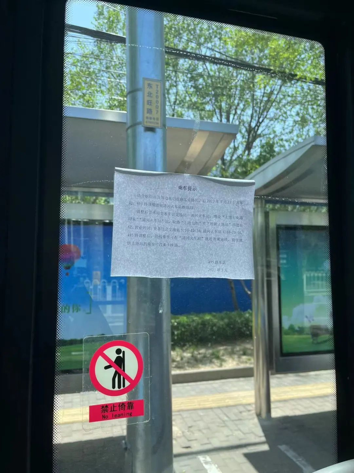 5月10日,上地七街站台已撤掉495路公交信息。