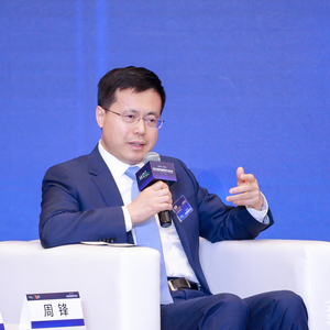 图为美高梅国际酒店集团中国区总裁、钓鱼台美高梅酒店集团总裁周锋参加2023世界品牌莫干山大会开幕式高端对话