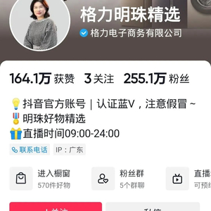 对于格力来说,孟羽童的加入也为公司的渠道转型带来更多热度。作为格力电器推进线上渠道建设的重要抓手,格力电商在抖音平台有两个主要直播账号,分别为“格力明珠精选”及“格力董明珠店”。截至目前,“格力明珠精选”抖音号已有255.1万粉丝,是格力电器旗下粉丝量较高的直播账号。