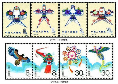 风筝作为中华民族古老灿烂的民间艺术,也曾在我国邮票中亮相,中国邮政两次发行《风筝》专题邮票。