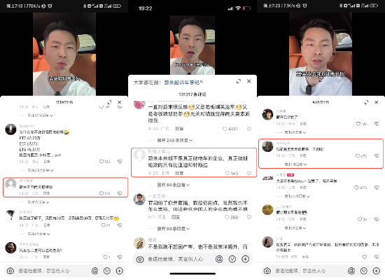 同时需要点出的是,在上述诋毁蔚来的相关视频发出之前,“车事纪”同期发布还发布了其余两条视频,在前两条视频中力捧某自主品牌。而在第三条中,更是直接用“比亚迪在欧洲价格堪比豪车,而蔚来到了欧洲就怂了,到底谁在割韭菜,一目了然”这样的话题,刻意制造蔚来与比亚迪之间的对立,捧一踩一,对公众心智进行错误引导。