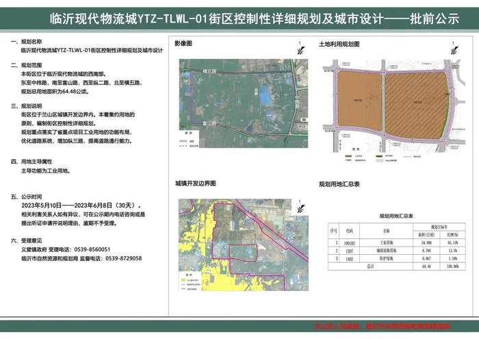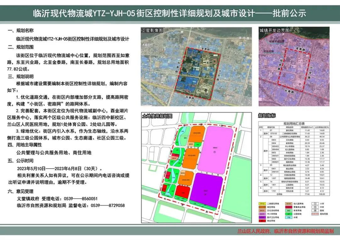 该街区位于临沂现代物流城中心位置,规划范围西至如意路,东至兴业路,北至金泰路,南至长春路,规划总用地面积77.82公顷。