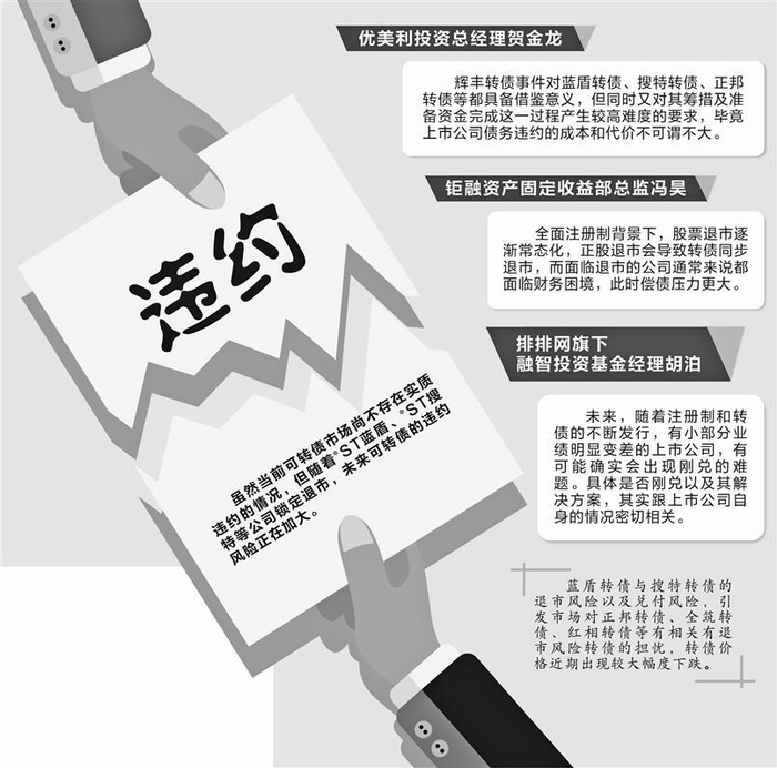 贺金龙认为,辉丰转债事件对蓝盾转债、搜特转债、正邦转债等都具备借鉴意义,但同时又对其筹措及准备资金完成这一过程产生较高难度的要求,毕竟上市公司债务违约的成本和代价不可谓不大。