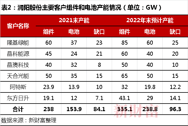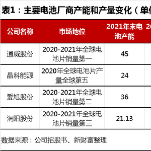 2021年底,和通威股份45GW产能以及爱旭股份36GW产能相比,润阳股份21GW产能相比明显落后,甚至已低于晶科能源的24GW产能,如果不扩产,产量全球第三的江湖地位只怕很快被晶科能源取代。