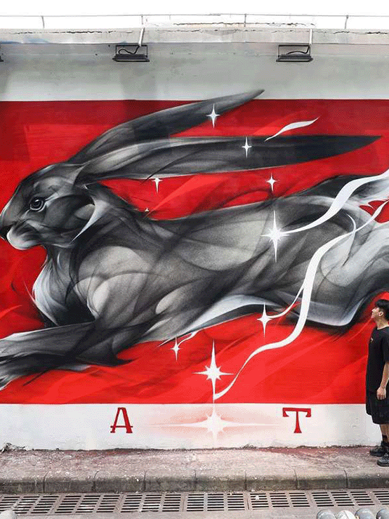 涂鸦艺术家,SOUR团队成员。工作生活于广州,自13年开始接触街头艺术至今。她独创的喷漆雾化形体塑造法,使其笔下的动物极具动感,在剥离中国传统绘画工具外,依旧具有水墨韵味。