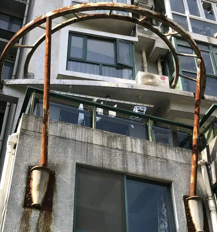 河滨围城小区是2001年的商品房小区,且8、9、10号三栋楼的南面阳台位置设计了精美时尚的铁架装饰物,伴随时间的流逝,铁架早已锈迹斑斑、腐蚀严重,就在前几年,随时都有坠落的风险,给居民带来了“头顶上”的安全隐患。