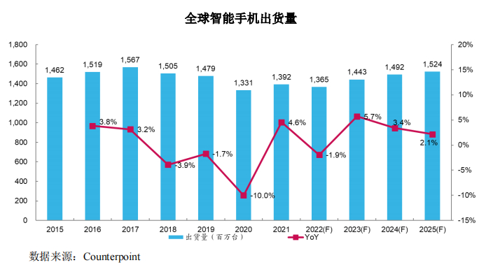 此后十多年时间里,全球智能手机进入黄金时代,招股书数据显示,2010-2020年全球手机出货量年均复合增长率为16%。