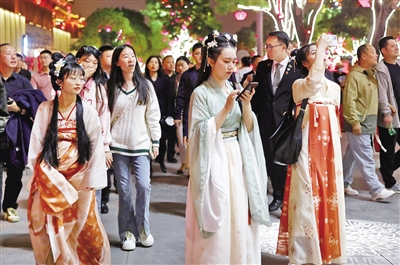 在她看来,西安跟汉服的契合度很高。“在这里,从来不会有人觉得你在穿奇装异服。”胡雅琪说,她日常出行也经常穿汉服,“可以说,汉服一定程度上改变了我的生活。”