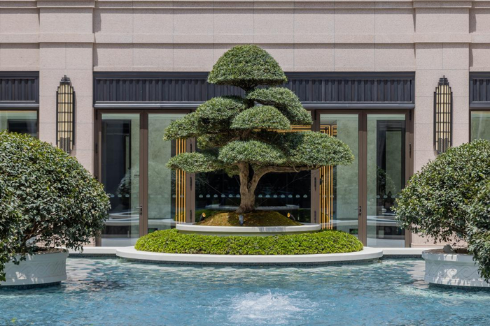 原有的精装车库已是行业天花板,这次就将立柱的饰面和灯带将再次升级,从细节上为业主营造更佳的舒适感与尊贵感;原本社区就是石材铺设,这次公共空间室内部分的石材大量选用进口的雅博白,造价上大幅提升,但换来的是更优雅高级。即便项目西侧就是百万方的城市绿肺桃浦中央绿地,这次仍不吝以全冠移植,精心种植了分时绽放的四季景观,并筑造了一座超千平方米的中心绿地。