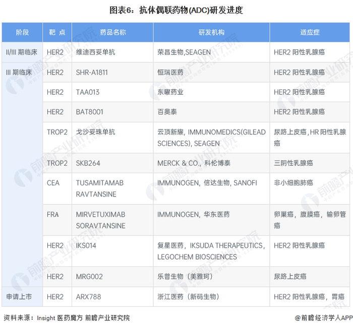 本文核心数据:抗体偶联药物(ADC)主要上市企业研发进度