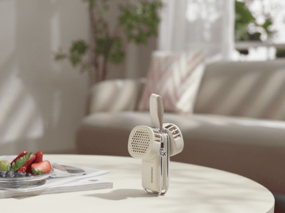这样收起来之后,可以当手持风扇,也可以当桌面小风扇来用。