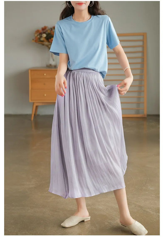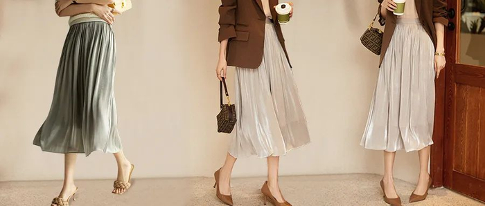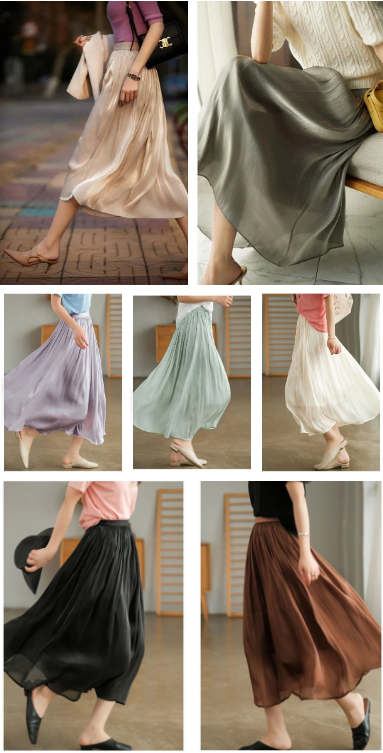 这款半身裙适合春夏,厚度上迎合春夏轻薄,丝滑柔软,非常轻盈。