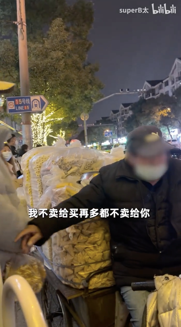 个别商户不足秤,被B太拆穿后,发现被拍摄的老板跟上来送了一盒小吃。
