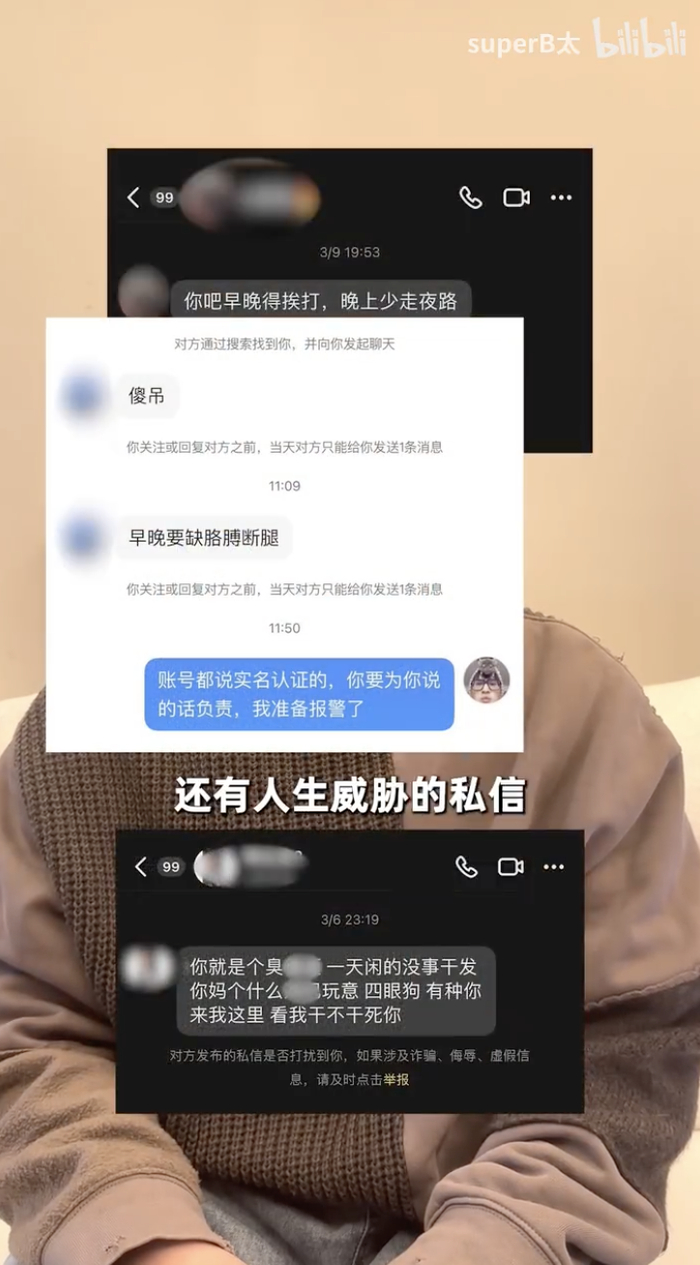 B太的私信箱里,除了鼓励之外,也有不少人身攻击和激烈谩骂。
