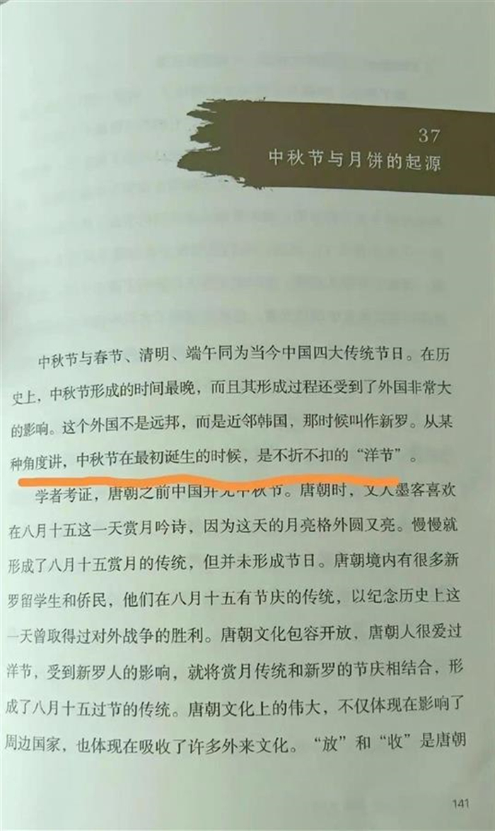 这本书,在介绍中秋节和月饼起源时,煞有其事的科普中秋节起源于韩国,是“洋节”。
