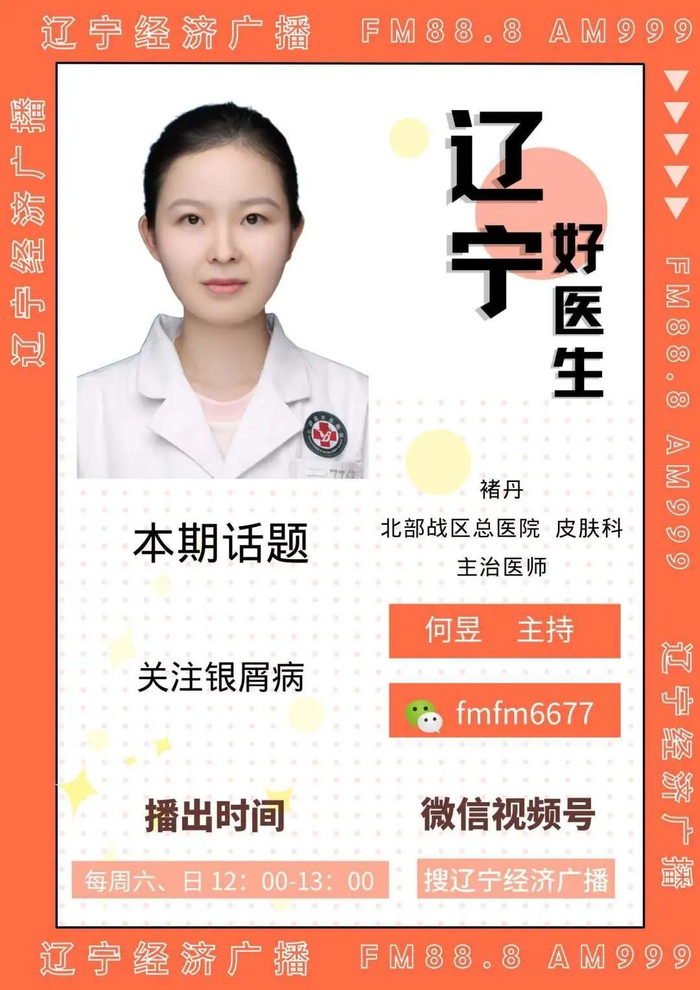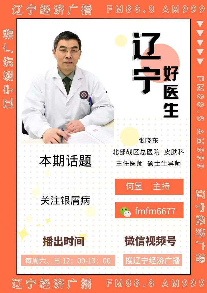 2023年5月14日(周日)中午12:00,FM88.8辽宁广播电视台经济广播《辽宁好医生》节目将邀请:北部战区总医院皮肤科主任医师,硕士生导师张晓东医生;皮肤科主治医师褚丹医生和您聊聊:关注银屑病!欢迎收听、收看。