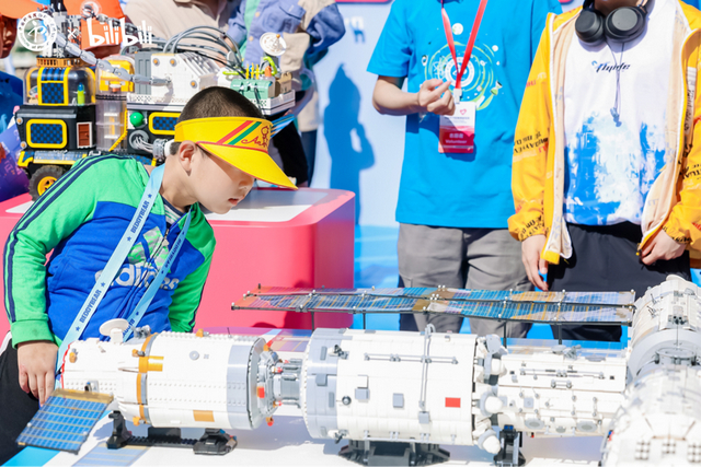 在中科院物理所的园区内,哔哩哔哩主题展区展示了UP主制作的中国空间站、未来火星车、磁流体音响等手工模型。展区内的模拟航天舱的布景以及AI互动装置,吸引了众多观众。B站还在展区内,展示了还在内部测试的自研AI互动平台,供小朋友们体验AI玩法。现场的大型实验秀上,科普达人杨帆(B站UP主“真·凤舞九天”)现场上演《大型实验秀:“化”说天下大“式”》,为大家呈现了丰富多样的科学实验,引起不少观看者的互动参与。